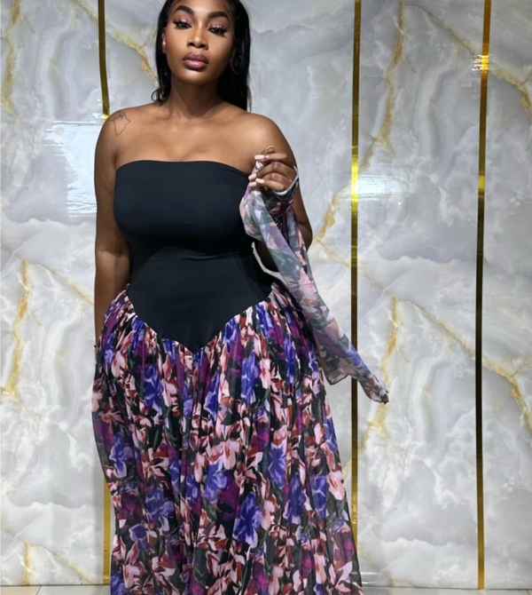 13 000CFA✨ Détails du produit : Couleur : Haut noir, jupe à imprimé floral multicolore Coupe :…