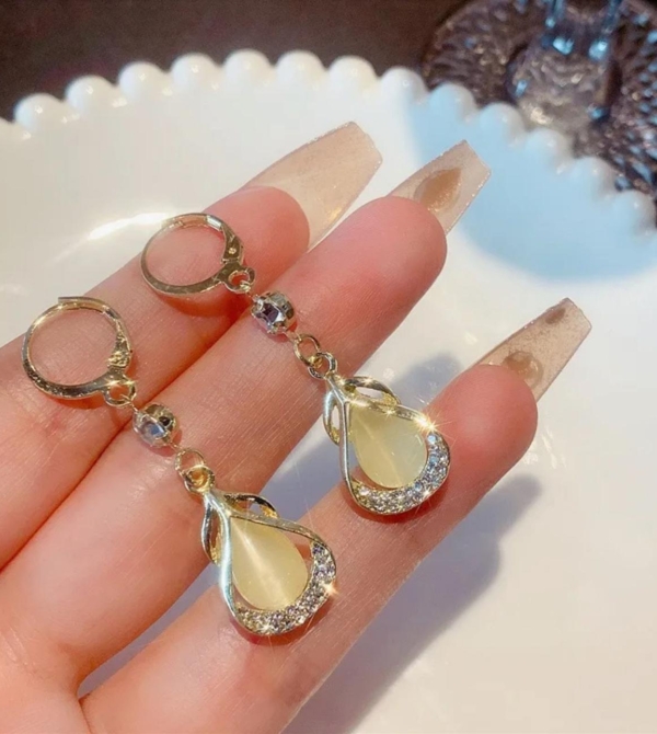 Boucles d’Oreilles Goutte Dorée & Cristaux BC012