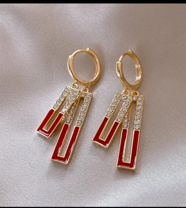 Boucles d’Oreilles Pendantes Rouge Strass BC015