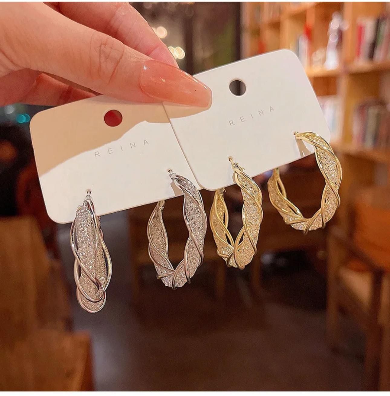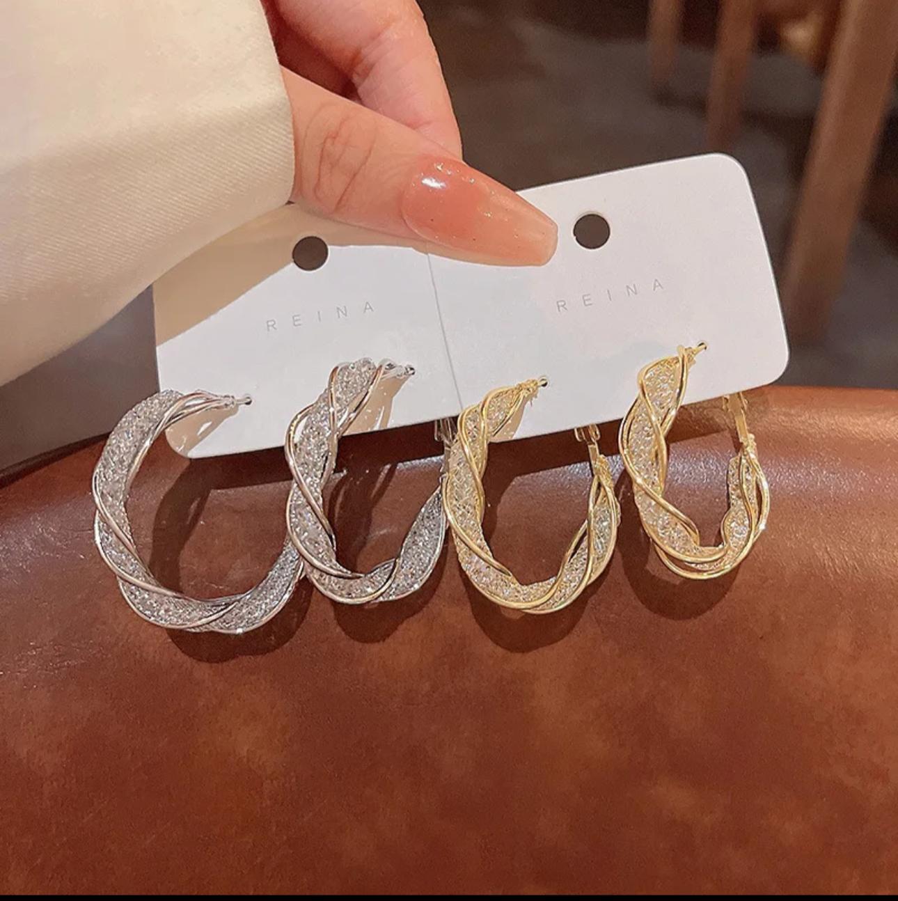 Brillez avec élégance grâce à ces magnifiques créoles tressées incrustées de strass scintillants.
