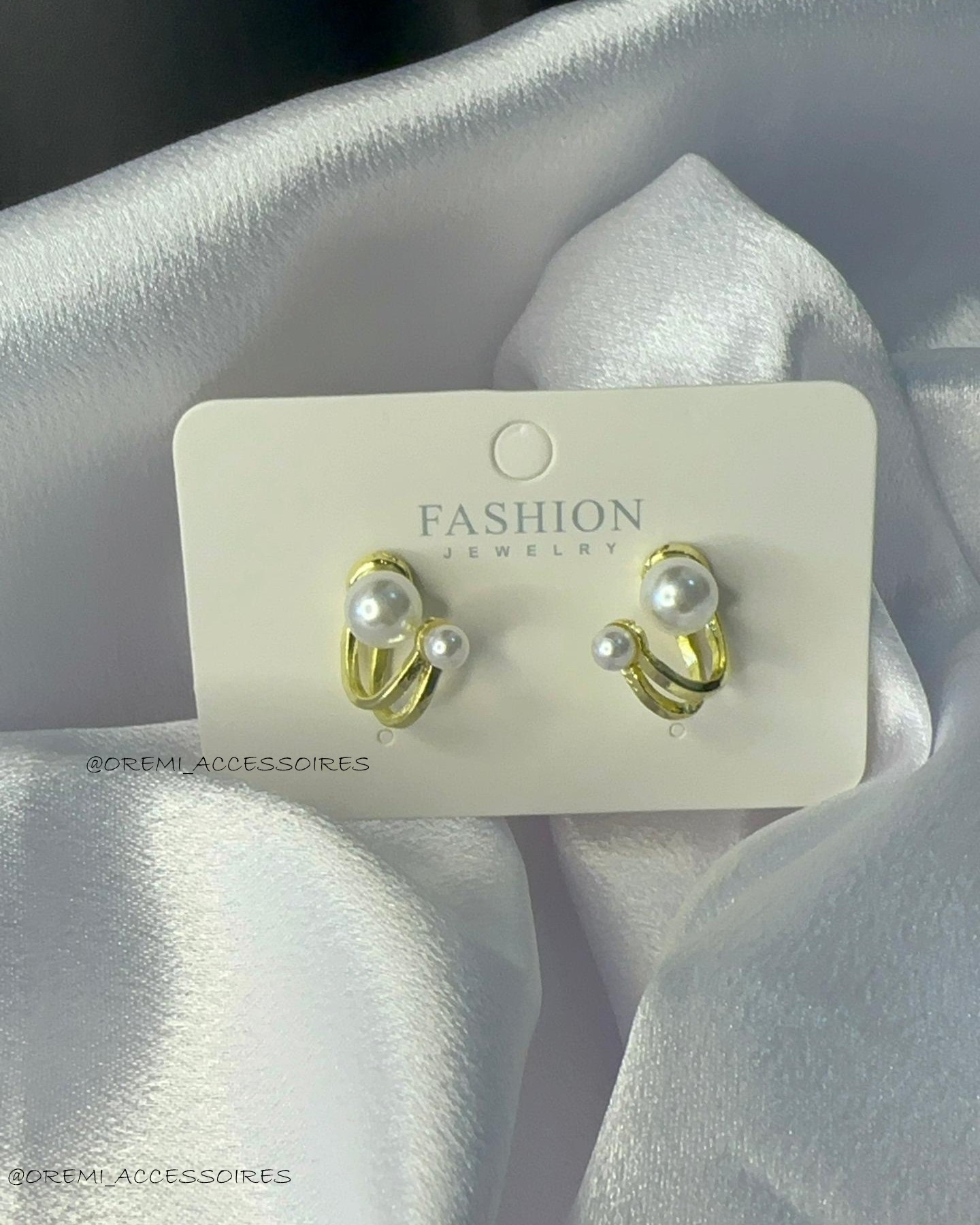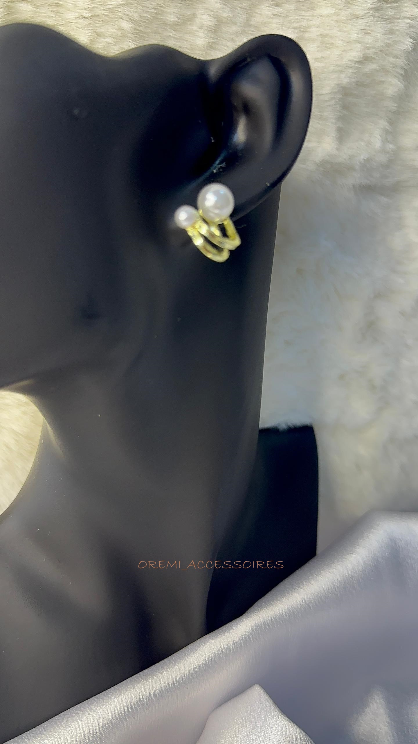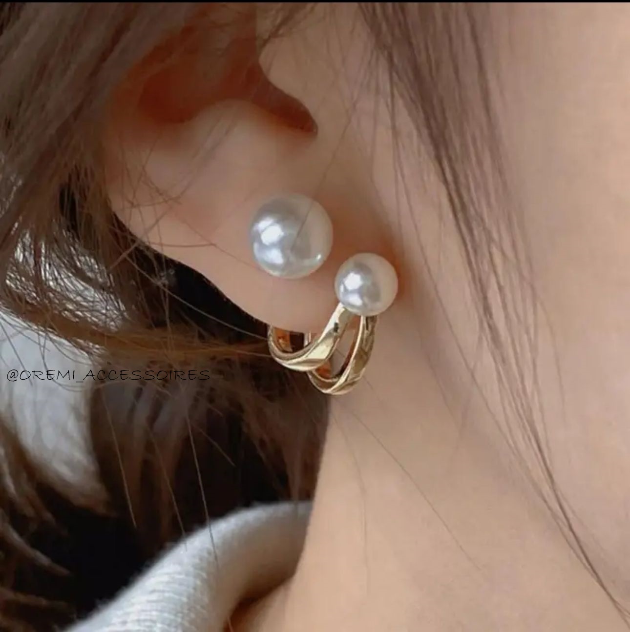 Boucles d’Oreilles Perle Double Face & Anneaux Dorés BC003