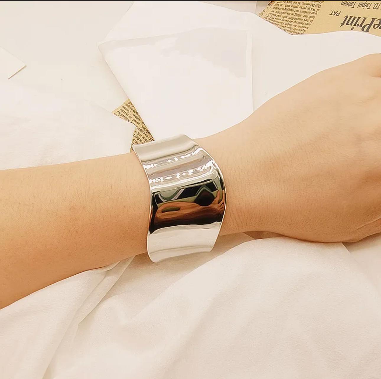 ✨ Ajoutez une touche de luxe à vos tenues avec cette manchette dorée au design minimaliste et moderne.