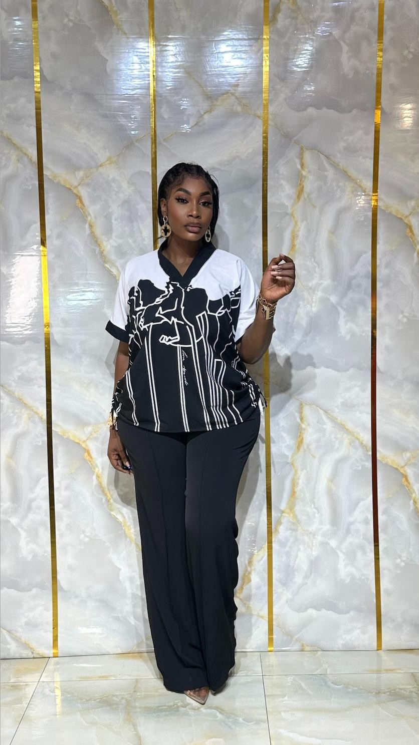 Chemise Oversize Graphique & Pantalon Classique Noir VF-BBS1086