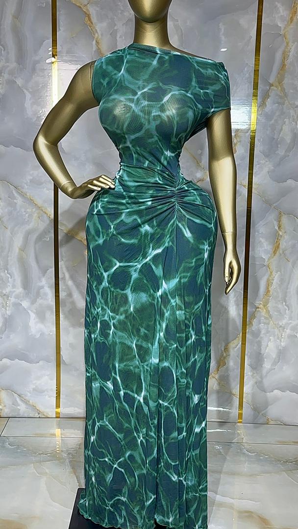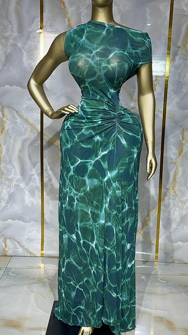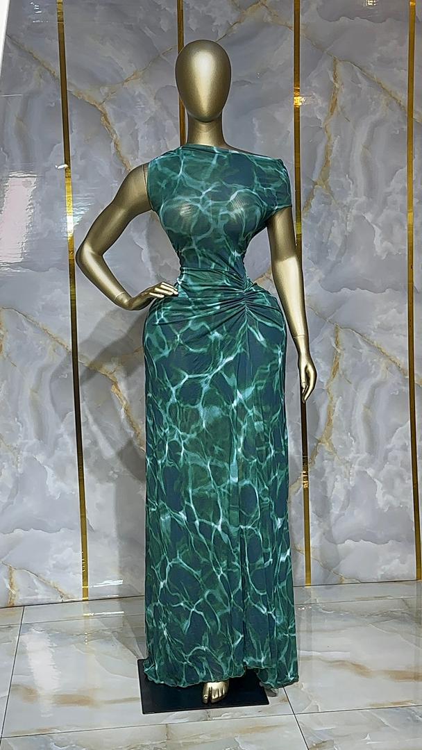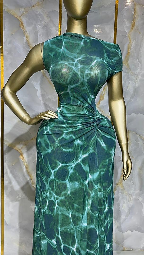 Robe longue imprimé aquatique vert VF-BBS1080